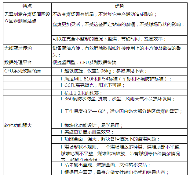 2)适用于露天料场及干棚料场内任何形状料堆体积的测量,料堆不需要整形。