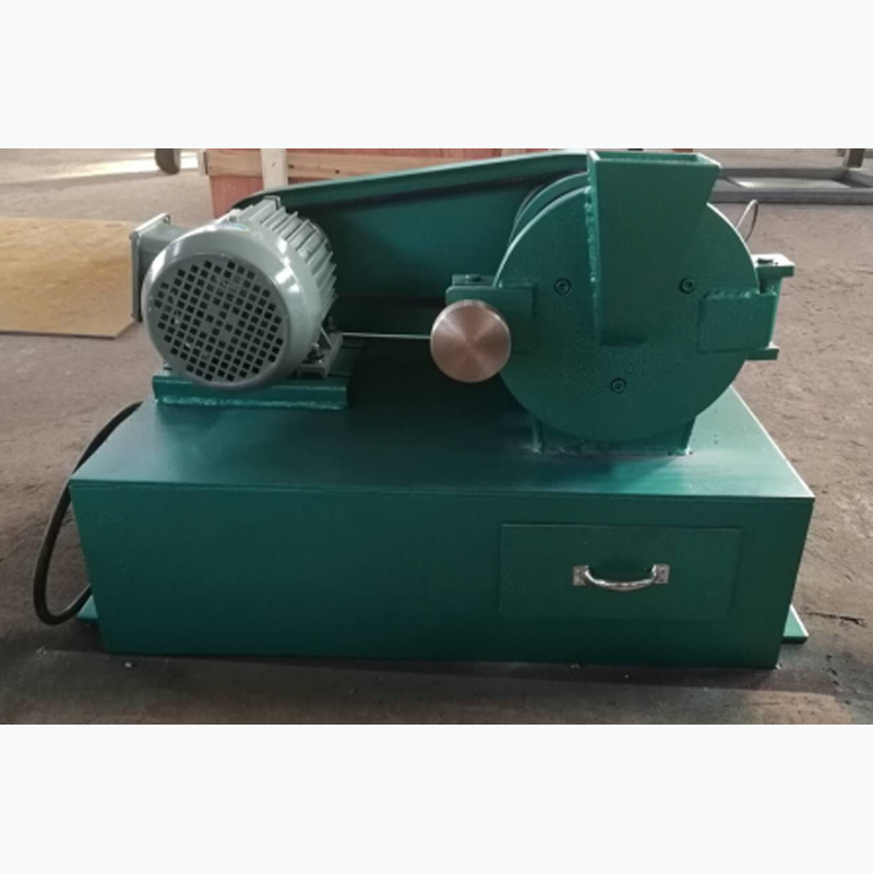 该机主要由机体、底座、主轴、活动磨盘、固定磨盘、端盖及料斗等构成。电机启动后,经三角皮带将动力传给皮带轮,带动主轴旋转,并使活动磨盘固定磨盘相对运动产生挤压磋磨作用,从而使进入磨盘中间的物料被粉碎。出料粒度可通过大小手轮、主轴等调整磨盘间隙达到控制粒度的目的。机体、端盖、上盖组成一个工作室,物料粉碎在工作室内进行,物料从端盖上方的加料口中加入,进入两磨盘中间,由于挤压磋磨作用试样粉碎,粉碎后的试样从两磨盘中间的间隙内流出。落到下面的料斗中。